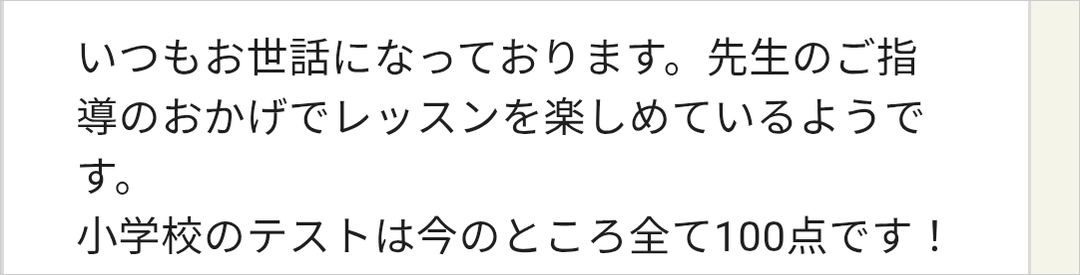 「小学校の英語テストは、今のところすべて100点です!」(小3より在籍・現在小5)